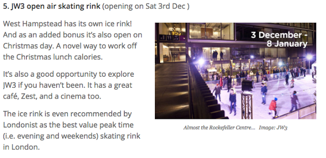 Winter has begun! An ice rink is open here in JW3. It is already open and will remain open until Sunday 8th January.